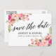 Modern Elegant Calligraphy, Watercolor Rosa Blommigt Bröllop spara datum Postcard