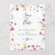 Den här klassiska blommigten för färgstark vild som sparar datumet för vykort är perfekt för ett orustiskt bröllop. Utformningen har en gult, lila, vita blommor med vild i ro och grönt med vattenfärg.
