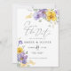Blommigten Lavendel Gult Spara datuminbjudan. Elegant och romantik sparar datumkortet med vackra, handmålade vattenfärgsmalare och gula blommor med kalligrafiskript för elegant. Modern blommigt bröllop spara datum-kort. Du kan anpassa ordalydelsen, teckensnittet stil, färg och storlekt framför och bakom kortet. Kontakta mig gärna om du vill ha matchande artiklar.