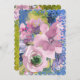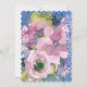 En vattenfärgsspray i blå, lavendelfärgade, rosa och violett är täckt av penseldrag av metalliskt guld och en rik mörk blått bakgrund. Högerna kant har en tunn linje av blått glitter för att lägga till en aning av stollig. Baksidan av inbjudan har en koordinerande baksida av den orustiska grönten med två sprayer av lavendelblommor och ett rent vitt rektangulärt överlägg. Texten är i två färger och kan vara personlig för att passa dina behov av Spara datum.