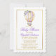 Modern Elegant Watercolor Violet Lila White Blommigt Luftballong Baby Shower-inbjudan. Omfattar vackert vattenfärgsfärgat lila ro, vita blommor och botaniskt grönt. Guld och Lila Text. Guld Ram.