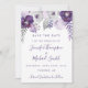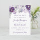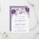 Inbjudan innehåller ljus och mörk lila vattenfärgsblommor, löv och silver blommigt inslag. Kopian är helt redigerbar. Du kan också ändra teckensnittet. Kortet har matchande inbjudningar, kuvert, etiketter och frimärke. Gör alla dina bröllop-objekt koordinerade!