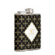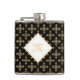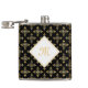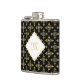 En lyxsvart och blommönster 6 oz-kolv med fyra punkter per guld som kan vara personlig genom att lägga till ditt monogram. Den här vintagen med monogrammade eleganter är helt säker på att du kan få ut din sofistikerade . Platt tryckt bild, inte metallisk.