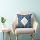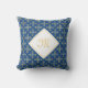 Ett lyxblått blommönster med fyra punkter per kvadrat i guld dekorativ kudde som kan vara personlig genom att lägga till ditt monogram. Den här vintagen med monogrammade eleganter är helt säker på att du kan få ut din sofistikerade . Platt tryckt bild, inte metallisk.