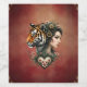 Magisk blommigt av ångerfull teknik: En konstnärlig, magisk porträtt-design som kombinerar naturliga motiv med mekaniskt inslag. Motivet är kvinnans profil och en tigers profil som symboliserar styrka och fokus. Under de två figurer är ett hjärtformat ram som är dekorerat med blommor och grönaktiga och subtila garvdetaljer.