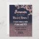 Elegant, chic och enkel, modern faux-tryckt ro guld glitter, blommor och typografi på modern marin blå bakgrund: "Kommer du att vara min Maid of honor?" Inbjudan till maid of honor. Denna klassiska och sofistikerade utformning är perfekt för trendiget och snyggten som vill få Maid of honor att känna sig speciellt och älskat. Anpassa med ditt eget meddelande på framsidan och en anpassad inledande monogram på baksidan. All fotoutskriftsdesign.