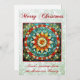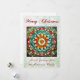 Glasdesign av ljusa och pulserande nedfläckader av flerfärgad blommigt mandala, i röd ram. Med blek grönt glitter bakgrund och God jul. Du kan ändra anpassadet hälsning vid grund i designen till ditt eget meddelande.