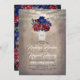Inbjudan till rustiskt landsbyggsbröllop för marin blå och burgundröd blommigt burk.