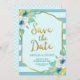 Blommigten Mint och Faux Guld Spara datumkortet Spara Datumet