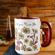 Modern Berry och Brun BLOMMIGT Designade Mugg, PERSONALISERA den här Bone China Mugg med Namnen på dina älskade, Elegant Script Text drar ihop den här designen och en av ett slags KEEPSAKE. Använda helt enkelt EDITING VERKTYG på produktsidan för den här produkten och ange Namnen i PUB, (Du kan behöva bakåt om du vill ta bort någon av designertexterna) Njut av ditt Äventyr! Artist Tanya Arseneau Nanniesfineart