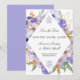 Dusty blue och lila blommor skapar ett modernt diamantformat ram runt om du sparar datuminformationen.