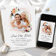 Gör din speciella dag ännu mer minnesvärd med den här Blommigten för geometrisk Bloom Foto Spara datumkortet. Utformningen av ren och contemporary har vackra blommigtar och djärva geometriska former, skapar perfekten för ett modernt och chic bröllop. Anpassa ditt kort med ditt favoritfoto och all information om din stora dag med Zazzles användarvänliga design verktyg. Med digitalnedladdningsalternativet kan du enkelt skriva ut eller kortet på social-media.