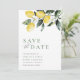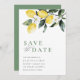 Moderna vattenfärgscitroner och grönska spara datumkortet bröllop. Texten och färg kan redigeras.