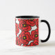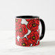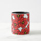 Det här anpassningsbar kaffet mugg har ett modernt mönster av feta röda vallmoblommor med gult- och svarta centrum på vit bakgrund.