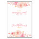 Skriptkortsformat med Möhippan bord med vackra blommor och färgstark, utbytbar blommigt, tryckt på vit bakgrund