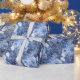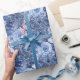 Fin blek blå ro på mörkens marinblått med snöre som blommigt och vita blommor.