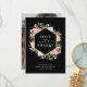 De här fantastiska bröllop-tackkorten säger "kärlek och tack" och har ett faux guld-geometriskt ram omgivet av blommor med lush, vattenfärgad neutralt i neutralt, jordtoner färg såsom beige persika, dammig ro och mjuk grönt med guld accents och löv. En elegant boho-blommigt tittar på en mörk svart bakgrund. Du kan lägga till ditt favoritfoto från bröllop på baksidan.