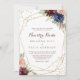 Denna geometriska inbjudan till bröllopet mellan guld glitter blommigt nuestra boda är perfekt för ett modernt spanskt bröllop. Utformningen har handritad lila för vattenfärg, marin, , burgundisk, marina blommor, grönt och guld löv som adorerar en elegant geometrisk ram