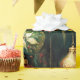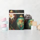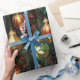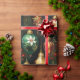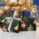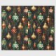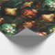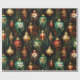 Vintage jul Fantasy Blommigt Vinterröda blommor mönster mot mörk grönt bakgrund med röda prydnadsföremål, guld och grönt