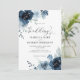 Elegantens blommigt - inbjudan till bröllop med vattenfärg. Vackert bröllop i modern blommigt med handmålade blommor i dammig och i skifferblått, marinskt mörk blått och elegant kalligrafi. Du kan anpassa texten, teckensnittet stil, färg och storlekt framför och bakom inbjudan. Kontakta mig gärna om du vill ha matchande artiklar.