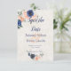Anpassa den här blommigten för persikor och blå vattenfärg spara datumet till kostym.