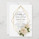 Geometric water color blommigt bröllopsinbjudningar i accents elfenben och guld.
