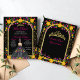 Elegant guld glitter arch med blommigt prinsessa klänning för 15:e födelsedagsinbjudan.