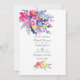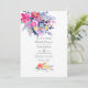 Sofistikerad bröllopsinbjudan med ljusa färgader för vilda blommor med plommonaccenter, ultraviolett och sage grönt designad för att snabbt och enkelt kunna anpassas till dina händelsespecifikationer. Perfekt för varje tema eller trädgårdsbröllop. QR-koden på andra sidan går till din bröllop-webbplats där människor kan lära sig mer och osa.