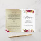 Det här eleganten quinceañera-programmet innehåller vackra blommor och löv i en kombination av rött, guld, gult och blekens rosa. Använda av modern information om kalligrafi. Lämnat sidor (som gången vikt skulle bli baksidan och den lämnat insidan) med elegant guldfärgat struktur. Anpassa programmet på båda sidor och lägg till information eller budskap som du vill, vårt är enkelt och bra exempel. Finns även på spanska. Obs! Det här programmet kommer att bli platt och det krävs att det viks ner i mitten för att samlas. Standardvärdesprogrammet rekommenderas.