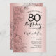 Ro Guld Blommigt 80 Födelsedagsfest inbjudan. Minimalistisk modern design med botaniska konturaccenter för teckning och typsnitt för typgrafiska skript. Enkel inbjudan-kortsperfekt för trendig för en snyggt kvinna på dagen firande. Kan anpassas till vilken ålder som helst. Skrivna Zazzle-inbjudningar eller digital utskrivbar mall för omedelbar nedladdning.