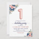 Blommigt Blått Rosa Bubrik 1:a födelsedagarinbjudan Utformningen har vattenfärgsblåa och blommor av rosa med ro guld-ballongaccent. Om du vill ändra numrerade ballonger kan du skicka e-post till mig på panggadesigns@gmail.com