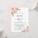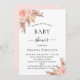 För en modern boho stil babydusch. En vit bakgrund på framsidan. Dekorerad med ro guld och rosa blommigt, rosor, pampasgräs. Anpassa och lägg till information om namn och party. Bakåt: ro guld.