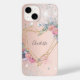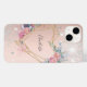 En metallisk bakgrund i ro guld tittar. Faux silver glitter damm som dekoration. Ett gyllene hjärta som dekoreras med rosa blommor. Anpassa och lägg till ett namn. Namn är skrivet med ett modernt grått färgad-handskript.