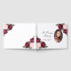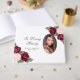 Anpassa enkelt den vackra blommigten med vattenfärg genom att älska minnet/begravningsgästen bok med ett foto med rött och rosa ros och baby utandningsblommor på en vit bakgrund.