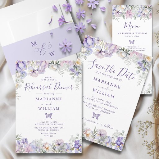 Markera dina kalendrar för ett bloomfyllt firande! Den här snygga Zazzle-plattan sparar datumkortet med en vismisk trädgårdsscen som spricker med mjuka lila- och rosa-iriser, vita peonier och en sprinkl av vilda blommor. Det skapar en drömmande och oförglömlig atmosfär, perfekt för att fånga kärnan i ert kommande boho, land eller trädgårdsbröllop.