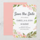 Boho rosa blommigt Spara datumkorten med svartfärgat handskript, modern typografi och en snyggt vattenfärgad rosa blommigt gräns med lush grönt löv på vit bakgrund. Kortets baksida är en matchande rosa. Lycklig Dolphin Studio är väldigt designad för dig. Kontakta oss på happydolphinstudio@outlook.com om du behöver hjälp eller matchande produkter. Vi är lycklig för att hjälpa dig att göra bröllop till den vackraste dagen. (1) Om du vill göra ytterligare anpassningar klickar du på länken "anpassa ytterligare" och användor verktyg som är utformat för att ändra mallen. (2) Om du föredrar Avsluta /projektionsyta kan du överväga att välja Papper projektionsyta.
