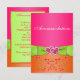 Kortet för denna pulserande och romantiska shock rosa, kalkgrönt och orange blommigt har ett tryckt platinavärde med ett par tryckt FAUX glitter och diamantjuvel gått med hjärtan på det som matchar de bröllopsinbjudningar som visas nedan. Du kan också använda det för ett riktningskort, ett presentkort, ett välvilligt kort, ett bröllop-webbplatskort eller annat slags informationskort genom att ändra texten i enlighet med detta. Det pappra valet är också anpassadet. Om du vill ha några andra matchande objekt kan du skicka e-post till niteowlstudio@gmail.com.