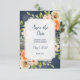 Med det här Spara datumkortet som innehåller vattenfärgsfärgade blommigtar i marinblått, persikofärgat och elfenbensfärgat får du ett meddelande till bröllop med elegans. Det moderna manuset och den klassiska layouten gör det till perfekt för bröllop- eller trädgårdsceremonier. Fullständigt anpassade med namn, datum och händelseinformation.
