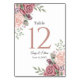 Det här bordsnumret i elegant har en vit bakgrund som färgat rosor i i ljusa rosa och dammiga ro. Du kan ändra teckensnittet stil och färg på vilket sätt som helst.Detta ingår i en matchande bröllop-svit som kan vara helt personlig.
