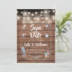Med strängen ljus ovanför en artsy mason burk fylld med din personlig sparar du datuminformation och sprider delikat blommor på en bakgrund av en rustik träpaneler. Designad av Thisisnotme©