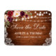 Rustic Wood String Ljus Snöre Watercolor Burgundy Marsala Blommigt Spara datum magneter