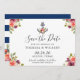 Bröllop spara datum-kort för marinblå marinankare Blommigt.