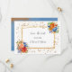 Du kommer att kärlek dessa blommigtar med blå och orange vattenfärg med guld glitter geometriska struktur. Matchande inbjudningar och produkter är tillgängliga.