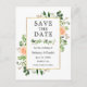 Modern Watercolor Eucalyptus Greenery Peach Blommigt Guld Ram Spara Förlovningen Postcard
