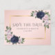 Blommigten Spara datum för Rosa för marinblå Guld Meddelande Vykort