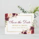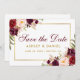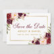 Blommigt för vattenfärg Burgundy Guld Spara datumkort för Förlovning - Burgundy och Guld