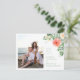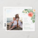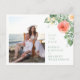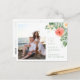 Det här sparar datumet för vykortet med ett foto och en bukett av persiko- och korallkorall ro med efterföljande grön framsida. Baksidan har stänk i färg tillsammans med utrymme för returadress, meddelande och QR-kod