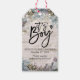 Märkre för Baby Shower Tack Gift - Elegant Script, Vintage Watercolor Botanical Blommigt och String Ljus på Rustic Wood Background. En Perfekt för din stora dag. Alla textstorlekar stil, färg, kan ändras för att passa dina behov.