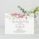 Inbjudningsmall för rosa blommigt-studentfester. Underbar för vår eller sommar studenten. Fintvätt och elegant med ett skriptteckensnitt i kontrast till ett modernt enkelt sans serif-teckensnitt. Anpassa med ditt namn och studenten-datum. Alla textstorlekar och färg kan ändras med undantag för "studentfest".