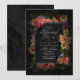 Lush blommigt i ljust, varmt färg, från korall och ro rosa till gyllene gult kombineras med livskraftiga, obsidiska bakgrunder till ge biet i detta elegant bröllop svit en mörk, moody ambiens. Den här inbjudan till en repetitionsmiddag i bröllop innehåller ett gräns av rikliga blommor runt en svart etikett med vit ram. Lägg till din händelseinformation med hjälp av den angivna mallen. Sök i ID829 för att se den fullständiga samlingen.